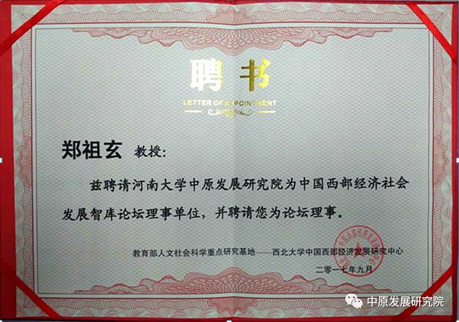 此次论坛主办方西北大学中国西部经济研究中心聘请我院为中国西部经济社会发展智库论坛理事单位,聘请郑祖玄教授为论坛理事。